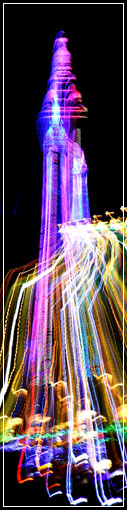 Starting from the tram depot near the Pleasure Beach, Amy walked the length of the illuminations to Bispham one October evening. Her plan was to take the familiar elements of Blackpool -the trams, the tower, the piers, the amusement arcades and the illuminations themselves- and produce abstract and startling images in which the subject matter were only just discernable.